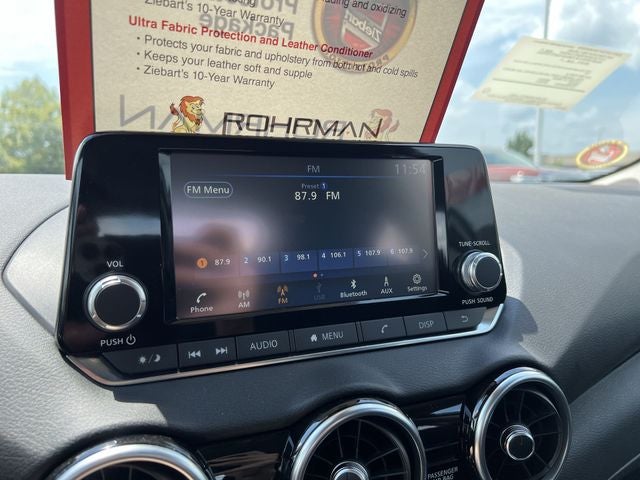 Sentra S is nicely equipped with CVT with Xtronic, Charcoal Cloth, 4 Speakers, ABS brakes, Air Conditioning, AM/FM radio, Auto High-beam Headlights, Blind Spot Warning, Body Colored Splash Guards (4-Piece), Brake assist, Bumpers: body-color, Clear Rear Bumper Protector, Cloth Seat Trim, Delay-off headlights, Driver door bin, Driver vanity mirror, Dual front impact airbags, Dual front side impact airbags, Electronic Stability Control, Four wheel independent suspension, Front anti-roll bar, Front Bucket Seats, Front Center Armrest, Front reading lights, Fully automatic headlights, Illuminated entry, Knee airbag, Low tire pressure warning, Nissan USB Charging Cable Set, NissanConnect featuring Apple CarPlay and Android Auto, Occupant sensing airbag, Outside temperature display, Overhead airbag, Overhead console, Panic alarm, Passenger door bin, Passenger vanity mirror, Power door mirrors, Power steering, Power windows, Radio data system, Rear anti-roll bar, Rear Parking Sensors, Rear side impact airbag, Rear window defroster, Remote keyless entry, Speed control, Speed-sensing steering, Split folding rear seat, Steering wheel mounted audio controls, Tachometer, Telescoping steering wheel, Tilt steering wheel, Traction control, Trip computer, and Variably intermittent wipers.