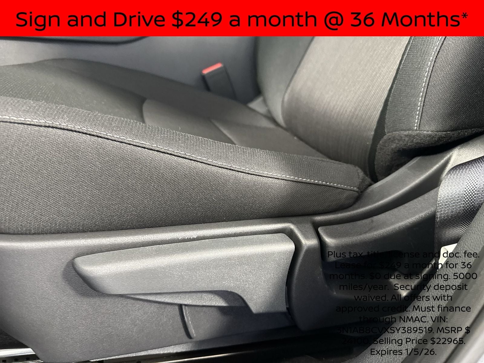 All prices exclude estimated taxes, title, licensing, and some dealer fees. Payments include $358 dealer fee and $695 lease acquisition fee. Available to well-qualified lessees on approved credit by Nissan Motor Acceptance Corp. (NMAC). Not all lessees may qualify. Offer assumes 14.47% down payment or $3,807 due at signing. Cash due at signing includes $3,499 down payment and first month's lease payment of $308. Actual net capitalized cost $20,484. Total payments equal $12,012. At lease end, purchase for $13,299, plus any official fees and taxes related to the scheduled termination and excess wear and use. Please see dealer for details. Offer expires 2/2/2026 12:00:00 AM.
