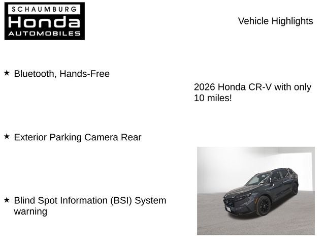 This exceptional 2026 Honda CR-V Hybrid Sport-L is now available for $39,583. Experience the perfect blend of efficiency, technology, and style by scheduling a test drive today. We're confident that once you take this remarkable SUV for a spin, you'll be convinced that it's the perfect fit for your lifestyle.