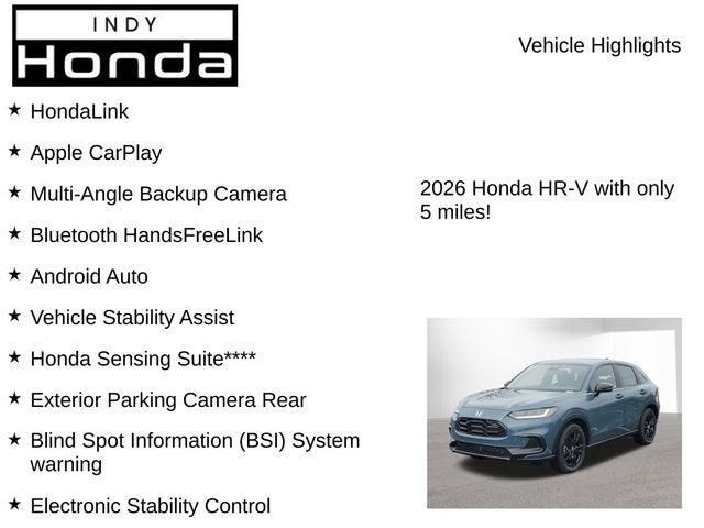 Experience the difference for yourself. Visit our showroom and take the 2026 Honda HR-V Sport for a test drive. We're confident you'll be impressed by its remarkable capabilities and the exceptional value it offers. Let's discuss how this exceptional SUV can enhance your driving experience and become an integral part of your lifestyle.