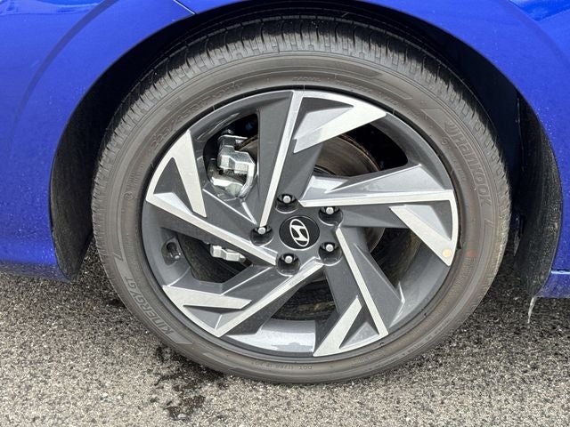 Elantra Limited is nicely equipped with Option Group 01, Elantra Limited, 4D Sedan, I4, CVT, FWD, Intense Blue, Black Premium Synthetic, 4-Wheel Disc Brakes, 8 Speakers, ABS brakes, Air Conditioning, Alloy wheels, AM/FM radio: SiriusXM, Apple CarPlay & Android Auto, Auto High-beam Headlights, Auto-dimming Rear-View mirror, Automatic temperature control, Brake assist, Bumpers: body-color, Cargo Net, Cargo Side Bins, Cargo Tray, Carpeted Floor Mats, Delay-off headlights, Driver door bin, Driver vanity mirror, Dual front impact airbags, Dual front side impact airbags, Electronic Stability Control, Emergency communication system: None, Exterior Parking Camera Rear, First Aid Kit, Front anti-roll bar, Front Bucket Seats, Front Center Armrest, Front dual zone A/C, Front reading lights, Front wheel independent suspension, Fully automatic headlights, H-Tex Leatherette Seats, Heated door mirrors, Heated Front Bucket Seats, Heated front seats, Illuminated entry, Low tire pressure warning, Navigation System, Occupant sensing airbag, Outside temperature display, Overhead airbag, Overhead console, Panic alarm, Passenger door bin, Passenger vanity mirror, Power door mirrors, Power driver seat, Power moonroof, Power steering, Power windows, Radio: AM/FM/HD/SiriusXM Display Audio, Rear Bumper Applique, Rear seat center armrest, Rear side impact airbag, Rear window defroster, Remote keyless entry, Security system, Speed control, Speed-sensing steering, Split folding rear seat, Steering wheel mounted audio controls, Tachometer, Telescoping steering wheel, Tilt steering wheel, Traction control, Trip computer, Turn signal indicator mirrors, Variably intermittent wipers, and Wheels: 17 x 7.0J Machine Finish Alloy. FWD CVT I4