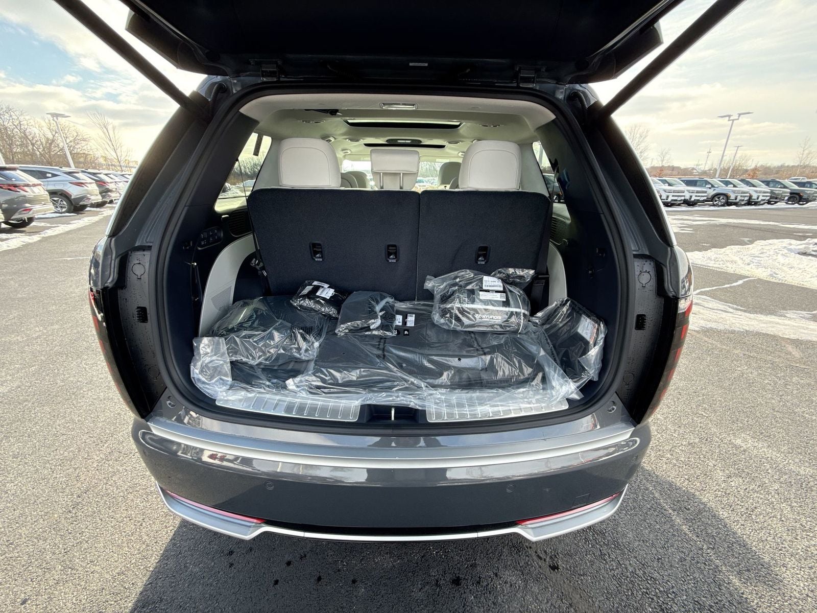 **ALL WHEEL DRIVE**, **SUNROOF/MOONROOF**, ** 7 PASSENGER**, **NAVIGATION**, **LEATHER SEATS**, **3RD ROW SEATS**, **PUSH BUTTON START**, **KEYLESS ENTRY**, **BACKUP CAMERA**, **Bluetooth®**, **HEATED STEERING WHEEL**, **RAIN SENSING WIPERS!**, **POWER LIFTGATE**, **REMOTE START**, **BLIND SPOT MONITOR**, **APPLE CARPLAY/ANDROID AUTO**, **ADAPTIVE CRUISE CONTROL**, PORTABLE AUDIO CONNECTION/MP3, **BOSE PREMIUM AUDIO**, Navigation System, Option Group 01. $4,886 off MSRP! Priced below KBB Fair Purchase Price! With options like Option Group 01, Navigation System, 14 Speakers, 3rd row seats: split-bench, 4-Wheel Disc Brakes, ABS brakes, Air Conditioning, Alloy wheels, AM/FM radio: SiriusXM, Apple CarPlay & Android Auto, Audio memory, Auto High-beam Headlights, Auto-dimming door mirrors, Auto-dimming Rear-View mirror, Auto-leveling suspension, Automatic temperature control, Brake assist, Bumpers: body-color, Cargo Net, Cargo Organizer, Cargo Tray, Carpeted Floor Mats, Compass, Delay-off headlights, Driver door bin, Driver vanity mirror, Dual front impact airbags, Dual front side impact airbags, Electronic Stability Control, Exterior Parking Camera Rear, First Aid Kit, Four wheel independent suspension, Front anti-roll bar, Front Bucket Seats, Front Center Armrest, Front dual zone A/C, Front reading lights, Fully automatic headlights, Garage door transmitter: HomeLink, Genuine wood console insert, Genuine wood dashboard insert, Heads-Up Display, Heated door mirrors, Heated front seats, Heated rear seats, Heated steering wheel, HVAC memory, Illuminated entry, Knee airbag, Leather steering wheel, Low tire pressure warning, Memory seat, Occupant sensing airbag, Outside temperature display, Overhead airbag, Overhead console, Panic alarm, Passenger door bin, Passenger vanity mirror, Power door mirrors, Power driver seat, Power Liftgate, Power moonroof, Power passenger seat, Power steering, Power windows, Premium Nappa Leather Seat Trim, Radio data system, Radio: Infotainment Navigation System, Rain sensing wipers, Rear air conditioning, Rear anti-roll bar, Rear audio controls, Rear reading lights, Rear side impact airbag, Rear window defroster, Rear window wiper, Reclining 3rd row seat, Remote keyless entry, Roadside Assistance Kit, Security system, Speed control, Split folding rear seat, Spoiler, Steering wheel mounted audio controls, Tachometer, Telescoping steering wheel, Tilt steering wheel, Traction control, Trip computer, Turn signal indicator mirrors, Variably intermittent wipers, Ventilated front seats, Ventilated rear seats, and Wheels: 21 x 8.5J Alloy. Ecotronic Gray Pearl 2026 Hyundai Palisade Calligraphy AWD 8-Speed Automatic V6