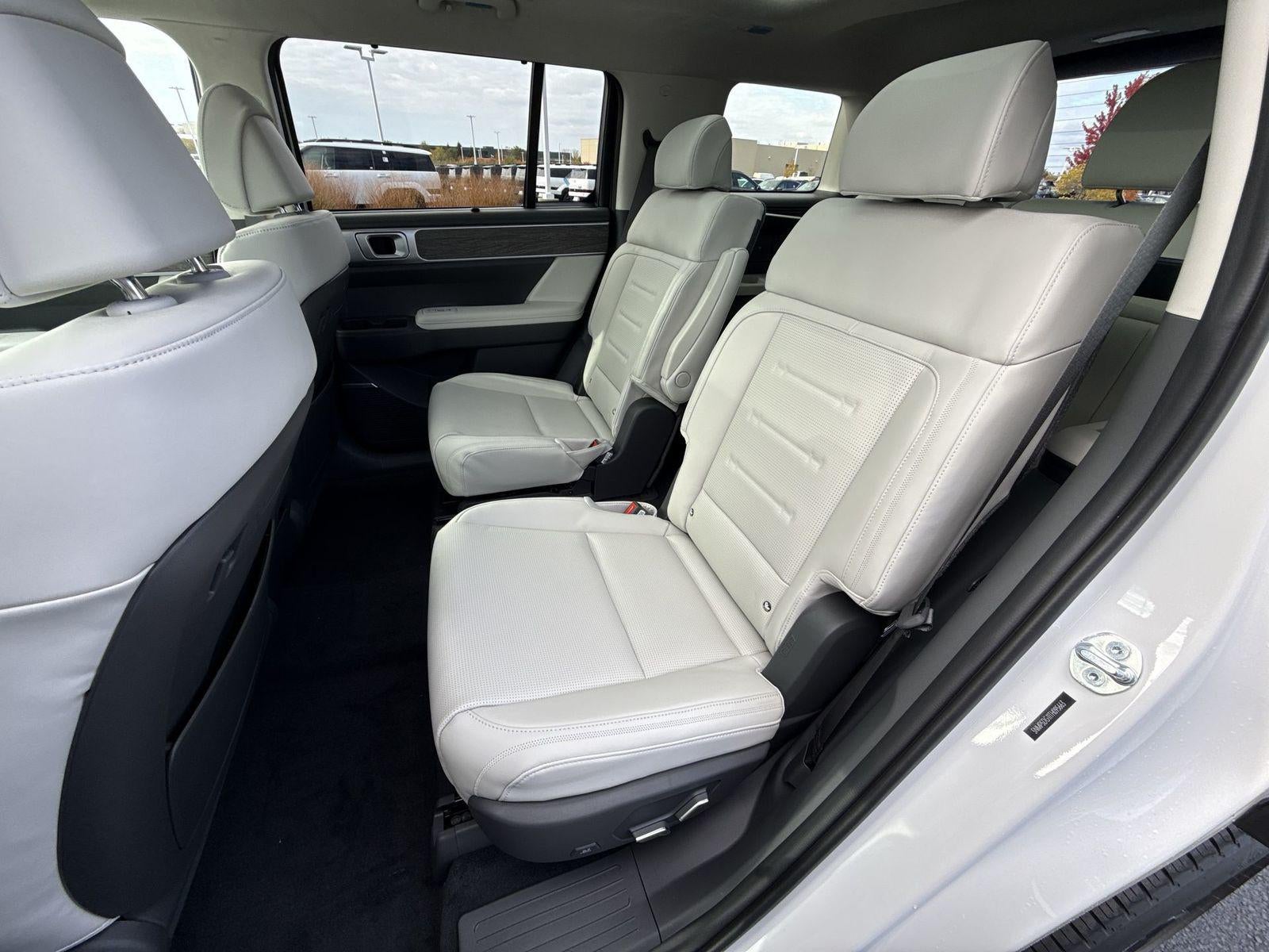 **ALL WHEEL DRIVE**, **SUNROOF/MOONROOF**, **NAVIGATION**, **LEATHER SEATS**, **3RD ROW SEATS**, **PUSH BUTTON START**, **KEYLESS ENTRY**, **BACKUP CAMERA**, **Bluetooth®**, **HEATED STEERING WHEEL**, **RAIN SENSING WIPERS!**, **POWER LIFTGATE**, **REMOTE START**, **BLIND SPOT MONITOR**, **APPLE CARPLAY/ANDROID AUTO**, **ADAPTIVE CRUISE CONTROL**, PORTABLE AUDIO CONNECTION/MP3, **BOSE PREMIUM AUDIO**, Navigation System, Option Group 01. $5,149 off MSRP! Priced below KBB Fair Purchase Price! With options like Option Group 01, Navigation System, 12 Speakers, 3rd row seats: bench, 4-Wheel Disc Brakes, ABS brakes, Air Conditioning, Alloy wheels, AM/FM radio: SiriusXM, Apple CarPlay & Android Auto, Auto High-beam Headlights, Auto-dimming Rear-View mirror, Automatic temperature control, Brake assist, Bumpers: body-color, Cargo Blocks, Cargo Cover/Screen, Cargo Net, Cargo Organizer, Carpeted Floor Mats, Delay-off headlights, Driver door bin, Driver vanity mirror, Dual front impact airbags, Dual front side impact airbags, Electronic Stability Control, Emergency communication system, Exterior Parking Camera Rear, First Aid Kit, Four wheel independent suspension, Front anti-roll bar, Front Bucket Seats, Front Center Armrest, Front dual zone A/C, Front reading lights, Fully automatic headlights, Garage door transmitter: HomeLink, Heads-Up Display, Heated door mirrors, Heated front seats, Heated rear seats, Heated steering wheel, Illuminated entry, Knee airbag, Leather steering wheel, Low tire pressure warning, Memory seat, Occupant sensing airbag, Outside temperature display, Overhead airbag, Overhead console, Panic alarm, Passenger door bin, Passenger vanity mirror, Power door mirrors, Power driver seat, Power Liftgate, Power moonroof, Power passenger seat, Power steering, Power windows, Quilted Premium Nappa Leather Seat Trim, Radio: AM/FM/HD Bose Premium Audio System, Rain sensing wipers, Rear anti-roll bar, Rear side impact airbag, Rear window defroster, Rear window wiper, Remote keyless entry, Security system, Speed control, Speed-sensing steering, Split folding rear seat, Spoiler, Steering wheel mounted audio controls, Tachometer, Telescoping steering wheel, Tilt steering wheel, Traction control, Trip computer, Turn signal indicator mirrors, Variably intermittent wipers, Ventilated front seats, and Wheels: 20 x 8.5J Unique Dark Finish Alloy. Serenity White 2026 Hyundai Santa Fe Hybrid Calligraphy AWD 6-Speed Automatic with Shiftronic I4