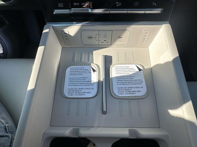 Santa Fe Hybrid Limited is nicely equipped with Option Group 01, Santa Fe Hybrid Limited, 4D Sport Utility, I4, 6-Speed Automatic with Shiftronic, FWD, Serenity White, Gray Leather, 12 Speakers, 3rd row seats: bench, 4-Wheel Disc Brakes, ABS brakes, Air Conditioning, Alloy wheels, AM/FM radio: SiriusXM, Apple CarPlay & Android Auto, Auto High-beam Headlights, Auto-dimming Rear-View mirror, Automatic temperature control, Brake assist, Bumpers: body-color, Cargo Net, Cargo Tray, Carpeted Floor Mats, Delay-off headlights, Driver door bin, Driver vanity mirror, Dual front impact airbags, Dual front side impact airbags, Electronic Stability Control, Emergency communication system, Exterior Parking Camera Rear, First Aid Kit, Four wheel independent suspension, Front anti-roll bar, Front Bucket Seats, Front Center Armrest, Front dual zone A/C, Front reading lights, Fully automatic headlights, Garage door transmitter: HomeLink, Heated and Ventilated Front Bucket Seats, Heated door mirrors, Heated front seats, Heated rear seats, Heated steering wheel, Illuminated entry, Knee airbag, Leather Seat Trim, Leather steering wheel, Low tire pressure warning, Memory seat, Navigation System, Occupant sensing airbag, Outside temperature display, Overhead airbag, Overhead console, Panic alarm, Passenger door bin, Passenger vanity mirror, Power door mirrors, Power driver seat, Power Liftgate, Power moonroof, Power passenger seat, Power steering, Power windows, Radio: AM/FM/HD Bose Premium Audio System, Rain sensing wipers, Rear anti-roll bar, Rear side impact airbag, Rear window defroster, Rear window wiper, Remote keyless entry, Roof Rack Crossbars, Security system, Speed control, Speed-sensing steering, Split folding rear seat, Spoiler, Steering wheel mounted audio controls, Tachometer, Telescoping steering wheel, Tilt steering wheel, Traction control, Trip computer, Turn signal indicator mirrors, Variably intermittent wipers, Ventilated front seats, and Wheels: 20 x 8.5J Alloy. FWD 6-Speed Automatic with Shiftronic I4