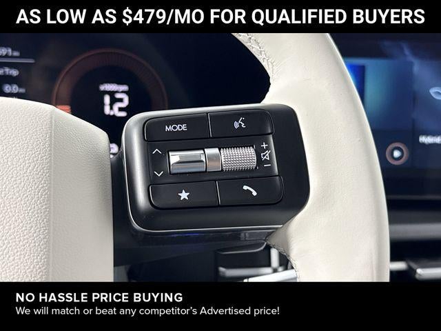 Santa Fe Hybrid SEL is nicely equipped with Option Group 01, Santa Fe Hybrid SEL, 4D Sport Utility, I4, 6-Speed Automatic with Shiftronic, FWD, Phantom Black, Gray Premium Synthetic, 18 x 7.5J Alloy Wheels, 3rd row seats: bench, 4-Wheel Disc Brakes, 6 Speakers, ABS brakes, Air Conditioning, Alloy wheels, AM/FM radio: SiriusXM, Apple CarPlay & Android Auto, Auto High-beam Headlights, Automatic temperature control, Brake assist, Bumpers: body-color, Carpeted Floor Mats, Delay-off headlights, Driver door bin, Driver vanity mirror, Dual front impact airbags, Dual front side impact airbags, Electronic Stability Control, Emergency communication system, Exterior Parking Camera Rear, Four wheel independent suspension, Front anti-roll bar, Front Bucket Seats, Front Center Armrest, Front dual zone A/C, Front reading lights, Fully automatic headlights, H-Tex Leatherette Seat Trim, Heated door mirrors, Heated Front Bucket Seats, Heated front seats, Illuminated entry, Knee airbag, Leather steering wheel, Low tire pressure warning, Occupant sensing airbag, Outside temperature display, Overhead airbag, Overhead console, Panic alarm, Passenger door bin, Passenger vanity mirror, Power door mirrors, Power driver seat, Power Liftgate, Power steering, Power windows, Radio: AM/FM/HD Display Audio, Rear anti-roll bar, Rear seat center armrest, Rear side impact airbag, Rear window defroster, Rear window wiper, Remote keyless entry, Security system, Speed control, Speed-sensing steering, Split folding rear seat, Spoiler, Steering wheel mounted audio controls, Tachometer, Telescoping steering wheel, Tilt steering wheel, Traction control, Trip computer, Turn signal indicator mirrors, and Variably intermittent wipers. FWD 6-Speed Automatic with Shiftronic I4