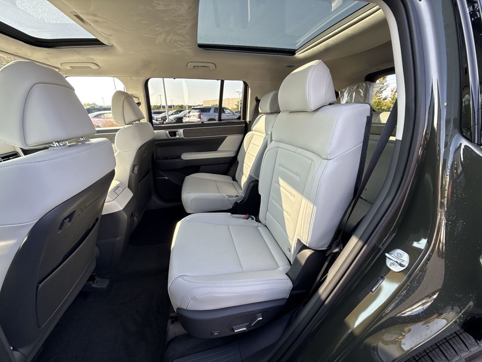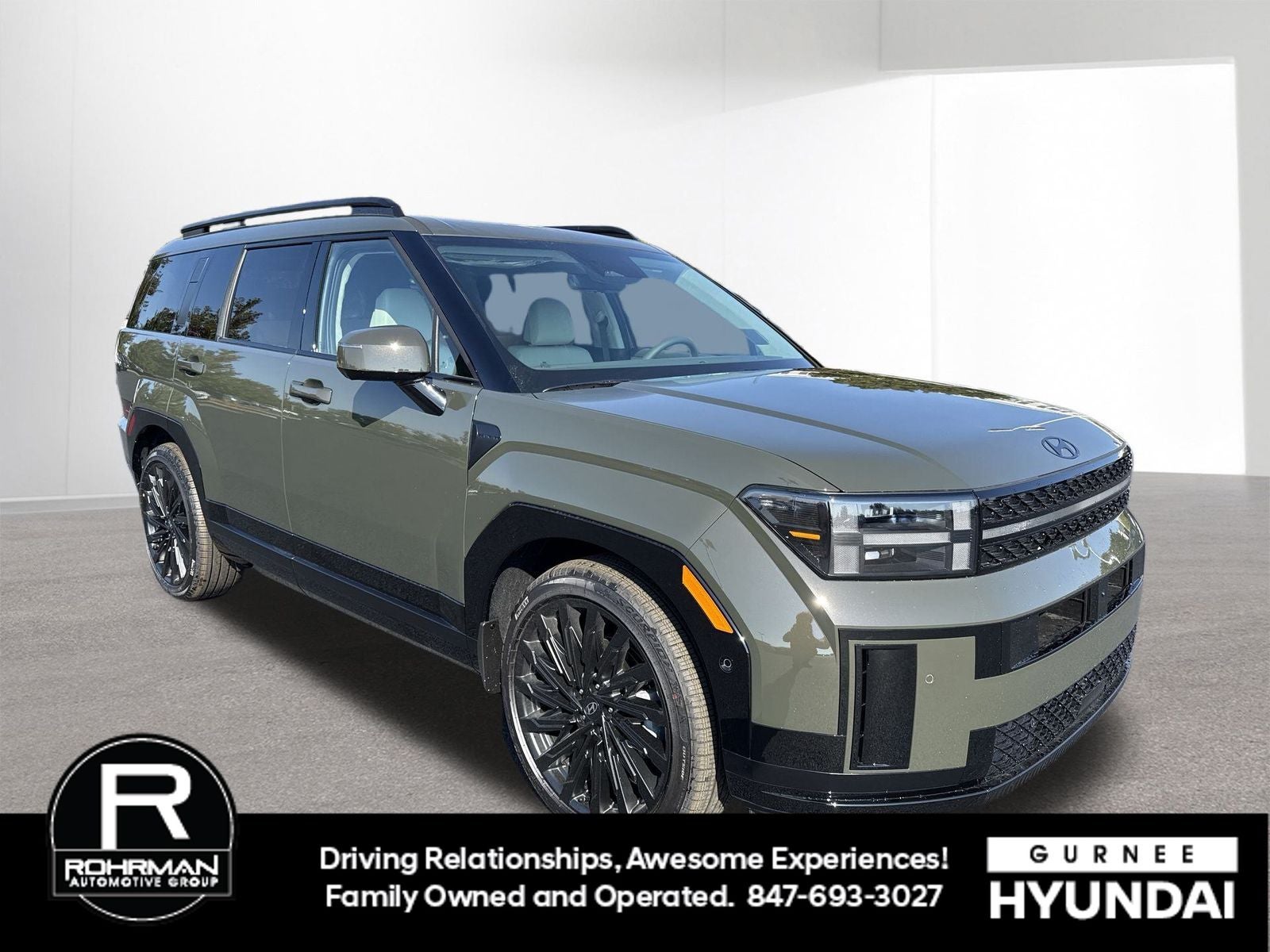 **ALL WHEEL DRIVE**, **SUNROOF/MOONROOF**, **NAVIGATION**, **LEATHER SEATS**, **3RD ROW SEATS**, **PUSH BUTTON START**, **KEYLESS ENTRY**, **BACKUP CAMERA**, **Bluetooth®**, **HEATED STEERING WHEEL**, **RAIN SENSING WIPERS!**, **POWER LIFTGATE**, **REMOTE START**, **BLIND SPOT MONITOR**, **APPLE CARPLAY/ANDROID AUTO**, **ADAPTIVE CRUISE CONTROL**, PORTABLE AUDIO CONNECTION/MP3, **BOSE PREMIUM AUDIO**, Navigation System, Option Group 01. $3,335 off MSRP! With options like Option Group 01, Navigation System, 12 Speakers, 3rd row seats: bench, 4-Wheel Disc Brakes, ABS brakes, Air Conditioning, All Season Fitted Liners, Alloy wheels, AM/FM radio: SiriusXM, Apple CarPlay & Android Auto, Auto High-beam Headlights, Auto-dimming Rear-View mirror, Automatic temperature control, Brake assist, Bumpers: body-color, Cargo Blocks, Cargo Cover/Screen, Cargo Net, Cargo Tray, Carpeted Floor Mats, Delay-off headlights, Driver door bin, Driver vanity mirror, Dual front impact airbags, Dual front side impact airbags, Electronic Stability Control, Emergency communication system, Exterior Parking Camera Rear, First Aid Kit, Four wheel independent suspension, Front anti-roll bar, Front Bucket Seats, Front Center Armrest, Front dual zone A/C, Front reading lights, Fully automatic headlights, Garage door transmitter: HomeLink, Heads-Up Display, Heated door mirrors, Heated front seats, Heated rear seats, Heated steering wheel, Illuminated entry, Knee airbag, Leather steering wheel, Low tire pressure warning, Memory seat, Mudguards, Occupant sensing airbag, Outside temperature display, Overhead airbag, Overhead console, Panic alarm, Passenger door bin, Passenger vanity mirror, Power door mirrors, Power driver seat, Power Liftgate, Power moonroof, Power passenger seat, Power steering, Power windows, Quilted Premium Nappa Leather Seat Trim, Radio: AM/FM/HD Bose Premium Audio System, Rain sensing wipers, Rear anti-roll bar, Rear side impact airbag, Rear window defroster, Rear window wiper, Remote keyless entry, Roadside Assistance Kit, Security system, Speed control, Speed-sensing steering, Split folding rear seat, Spoiler, Steering wheel mounted audio controls, Tachometer, Telescoping steering wheel, Tilt steering wheel, Traction control, Trip computer, Turn signal indicator mirrors, Variably intermittent wipers, Ventilated front seats, and Wheels: 21 x 8.5J Unique Dark Finish Alloy. Rockwood Green 2026 Hyundai Santa Fe Calligraphy AWD 8-Speed Automatic with SHIFTRONIC 2.5L I4