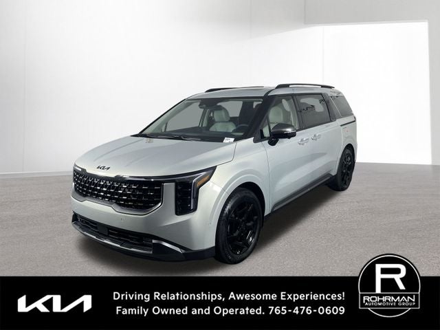 Price does not include tax, title, license, registration, or dealer installed options. Price Includes :$2000 - KFA Dealer Choice Program: $2000 discount and 5.25% APR for 36 months. $30.08 per $1000 financed. Available to well qualified buyers who finance through Kia Finance America. 506. Exp. 03/31/2026 Dealer Discount of $2,145 off MSRP Ivory Silver 2026 Kia Carnival Hybrid SX Prestige 4D Passenger Van FWD 1.6L I4 DGI Hybrid Turbocharged DOHC 16V LEV3-SULEV30 6-Speed Automatic 34/31 City/Highway MPG Backup Camera, Bluetooth® Handsfree, Navigation, Sunroof / Panoramic Roof, Wireless Phone Charger, Lane Keeping Assist & Lane Following Assist, Driver Attention Warning, Blind-Spot Detection, Smartphone Digital Key, Digital Rear View Mirror, LED Headlights, Surround View Monitor & Blind-Spot View Monitor, Heated & Ventilated 2nd Row Captain's Chairs, Passenger View & Passenger Talk, Android Auto and Apple CarPlay, blue tooth, 12 Speakers, 2nd Row Laminated Windows, 3rd row seats: split-bench, 4-Wheel Disc Brakes, ABS brakes, Active Cruise Control, Air Conditioning, Alloy wheels, AM/FM radio: SiriusXM, Ambient Lighting, Apple CarPlay & Android Auto, Auto High-beam Headlights, Auto-dimming Rear-View mirror, Automatic temperature control, Brake assist, Bumpers: body-color, Compass, Delay-off headlights, Driver door bin, Driver vanity mirror, Dual front impact airbags, Dual front side impact airbags, Dual Screen Rear Seat Entertainment System, Electronic Stability Control, Emergency communication system, Exterior Parking Camera Rear, Four wheel independent suspension, Front anti-roll bar, Front Bucket Seats, Front Center Armrest, Front dual zone A/C, Front fog lights, Front reading lights, Fully automatic headlights, Garage door transmitter: HomeLink, Heads-Up Display, Heated and Ventilated Front Bucket Seats, Heated door mirrors, Heated front seats, Heated steering wheel, Heated/Ventilated 2nd Row Power Vip Lounge Seats, High Glossy Interior Trim, Illuminated entry, Knee airbag, Leather Seat Trim, Leather Shift Knob, Leather steering wheel, Low tire pressure warning, Luxury Carpeted Floor Mats, Memory seat, Mud Guards, Navigation System, Occupant sensing airbag, Outside temperature display, Overhead airbag, Overhead console, Panic alarm, Passenger door bin, Passenger vanity mirror, Power 2nd-Row Moonroof, Power door mirrors, Power driver seat, Power Liftgate, Power moonroof, Power passenger seat, Power steering, Power windows, Radio: : Navigation System with SiriusXM, Rain sensing wipers, Rear air conditioning, Rear anti-roll bar, Rear reading lights, Rear Seat Entertainment Package, Rear window defroster, Rear window wiper, Reclining 3rd row seat, Remote keyless entry, Roadside Assistance Kit, Security system, Speed control, Speed-sensing steering, Split folding rear seat, Spoiler, Steering wheel mounted audio controls, SX Prestige Seat Package, Tachometer, Telescoping steering wheel, Tilt steering wheel, Traction control, Trip computer, Turn signal indicator mirrors, Variably intermittent wipers, Ventilated front seats, Wheels: 19 Black D-Cut Customizing. Internet price reflects all qualifying rebates and discounts. Customer must qualify, see dealer for details (765)250-5220.