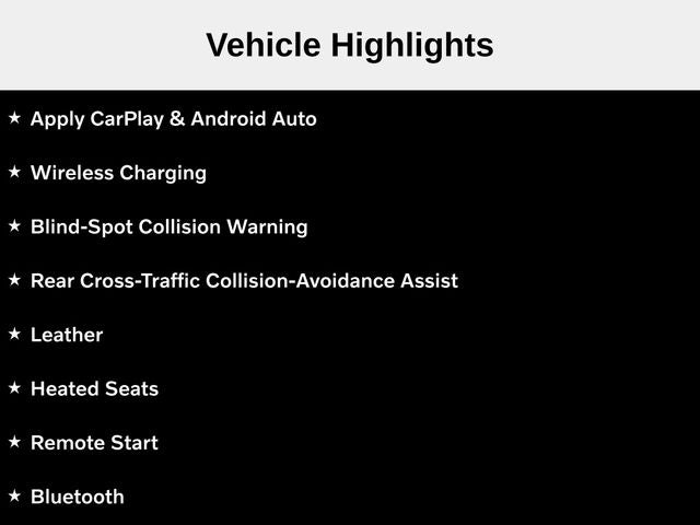 Apply CarPlay & Android Auto, Wireless Charging, Blind-Spot Collision Warning, Rear Cross-Traffic Collision-Avoidance Assist, Leather, Heated Seats, Remote Start, Bluetooth®, Backup Camera, Smart Cruise Control w/Stop & Go, Lane Following Assist, Forward Collision Avoidance, High Beam Assist, Highway Driving Assist, Lane Keep Assist, Lane Departure Warning, Push Button Smart with Smart Key, Kia Connect with 3 years free, SIRIUSXM Radio.