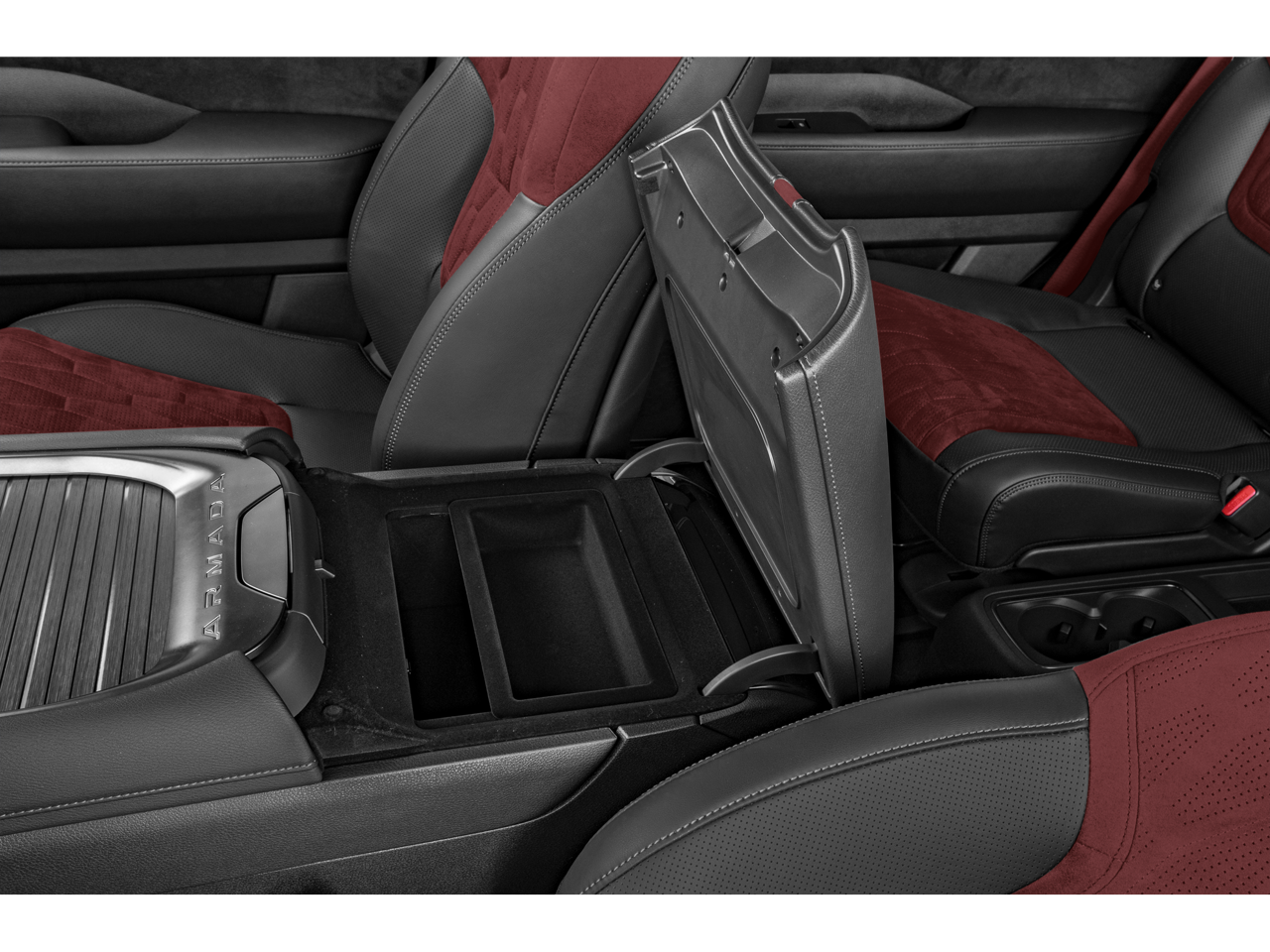 Comfort and convenience are paramount in the Armada NISMO. Dual-zone automatic climate control, a power liftgate, and a panoramic moonroof create an inviting and versatile cabin, while the heated front seats and steering wheel ensure you stay cozy even on the coldest days. The NISMO Suede Seat Trim adds a touch of sporty sophistication, complementing the Genuine wood dashboard insert.