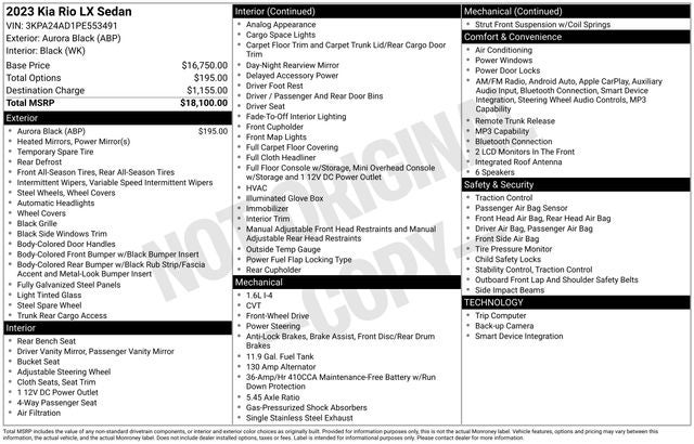 2023 Kia Rio LX Aurora Black 1.6L 4-Cylinder FWD 32/41 City/Highway MPG CVT