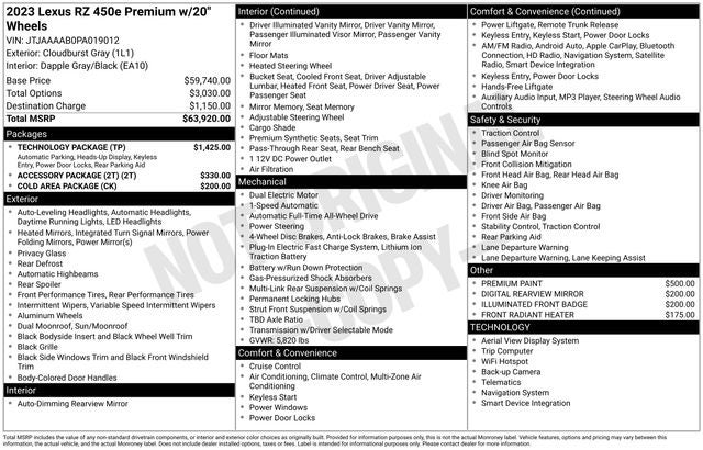 2023 Lexus RZ 450e PREMIUM AWD