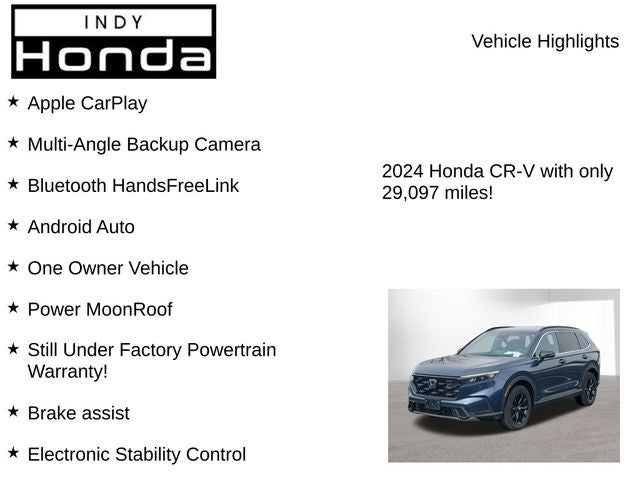 Discover the perfect blend of efficiency, technology, and style with this 2024 Honda CR-V Hybrid Sport-L. This meticulously maintained one-owner vehicle boasts an impressive array of features that elevate your driving experience.